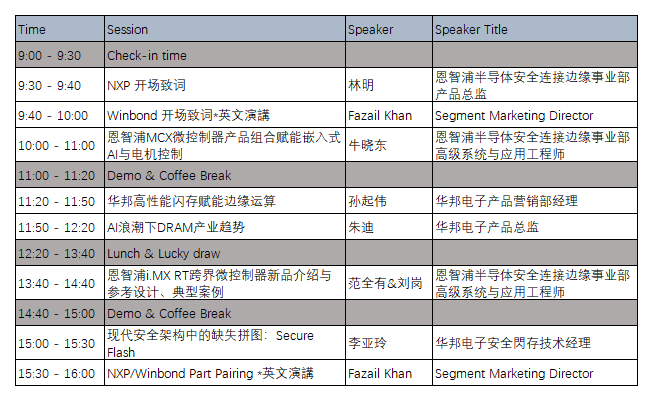 在生成式 AI 与边缘智能迅猛发展的浪潮下,如何以技术创新推动算力、存储与应用的高效协同,已成为产业转型升级的关键命题。本次,华邦电子携手恩智浦共同举办联合技术论坛,以“芯智所向 边缘无界”为主题,诚邀您共赴盛会,深入探讨 AI 时代的前沿技术趋势与产业新机遇。